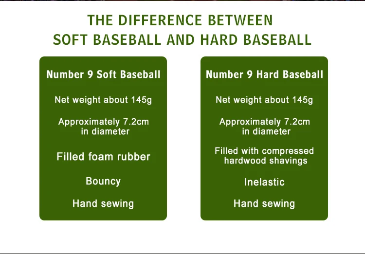 Существует два типа: мягкая бейсбольная форма и жесткая бейсбольная форма. Мягкая подходит для всех летучих мышей. Жесткая Форма подходит только для твердых летучих мышей (например, для летучих мышей из твердой древесины). Жесткий Бейсбол негибкий и жесткий, не рекомендуется для детей. Чтобы не повредить другим. Жесткий Бейсбол-это конкретный бейсбольный мяч. Мягкая бейсбольная форма подходит для детей всех возрастов и уровней опыта, начинающих и т. Д. Особенности: Прошитые вручную, ПВХ верхние, сжатые деревянные гранулы, поднятые швы, мягкая сердцевина. Помогает юным игрокам развить уверенность и научиться правильной механике. Новая белая бейсбольная форма Тренировочный Софтбол Спортивная командная игра Может использоваться в игре, на практике, в развлечениях, в качестве подарка. Технические характеристики: Цвет: белый Материал: Резина + ПВХ Диаметр: около 7,2 см/2,8 дюйма Вес: 145 г Посылка включает в себя: 1 x Спортивные Бейсбол