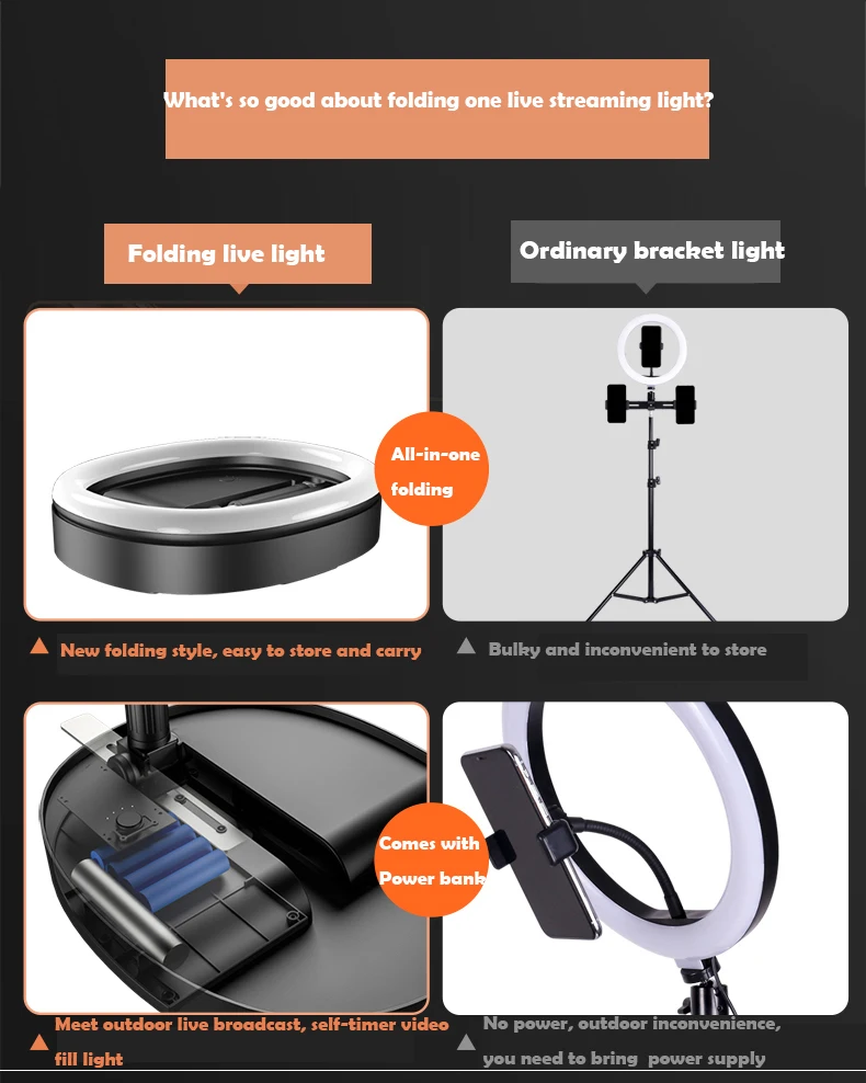 Лампа для селфи с несколькими камерами, уличный Настольный складной светильник с кольцом для телефона, светильник для видеосъемки с кронштейном для телефона