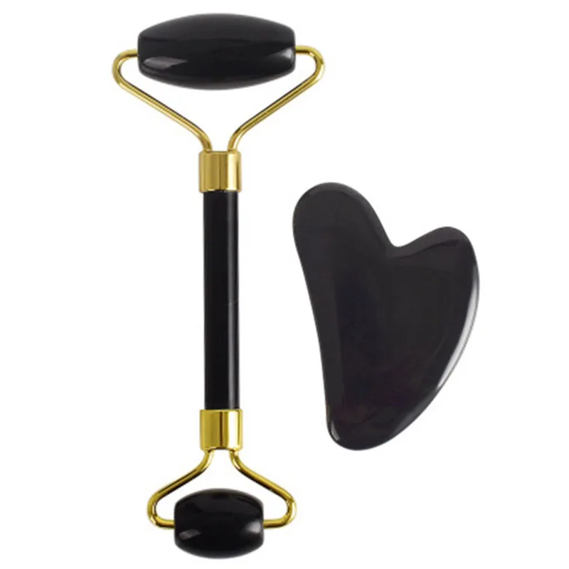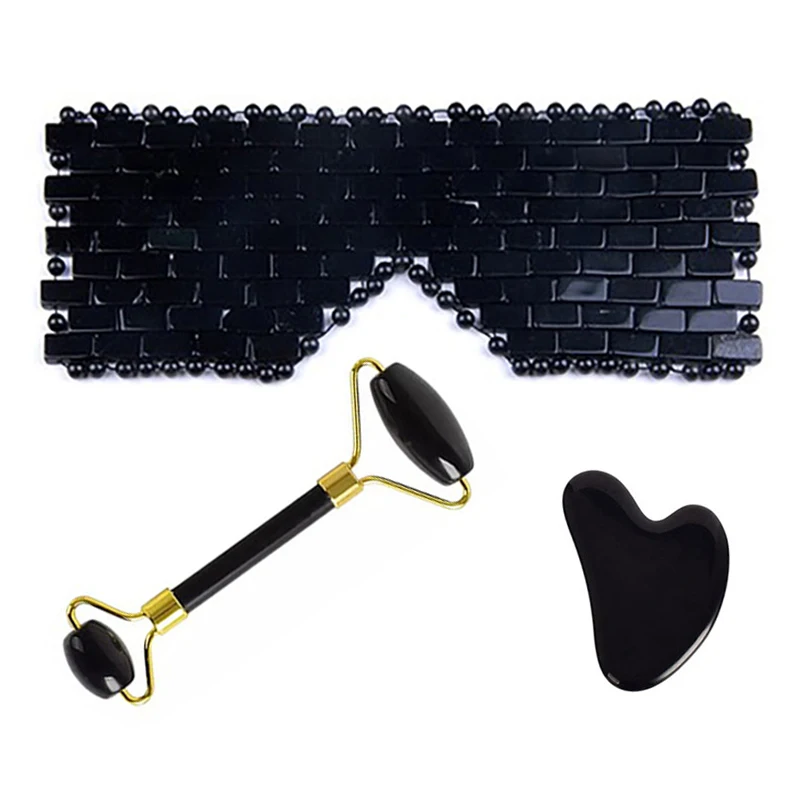 Черная Обсидиановая маска для глаз, натуральная Нефритовая маска для лица, Нефритовый роликовый массажный набор, массажер для лица, гуаша доска для холодной терапии, гуаша скребок
