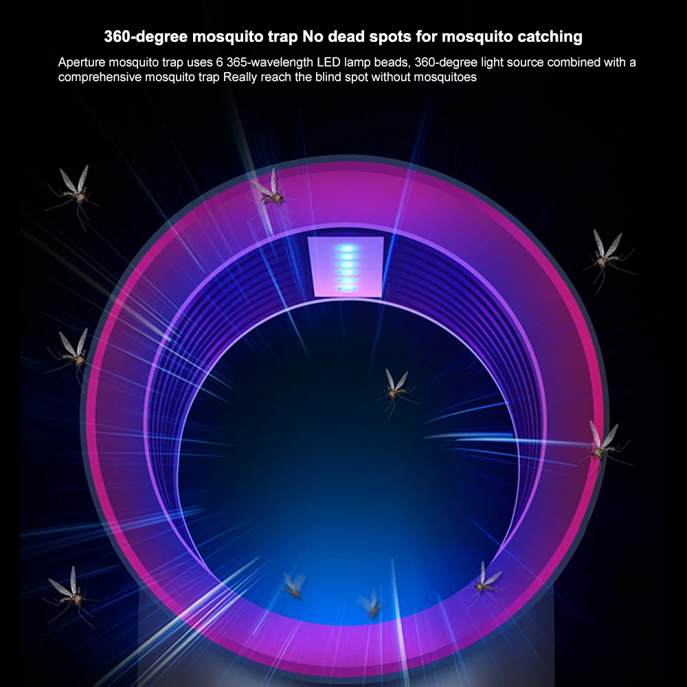 Эффективное противомоскитное управление: работает с мощным вентилятором, обеспечивает циркуляцию воздуховода, конвекцию 7 спиральных ветровых лопастей обеспечивают сильное всасывание для формирования большого потока воздуха. Сделайте комаров обезвоженным и умершим.