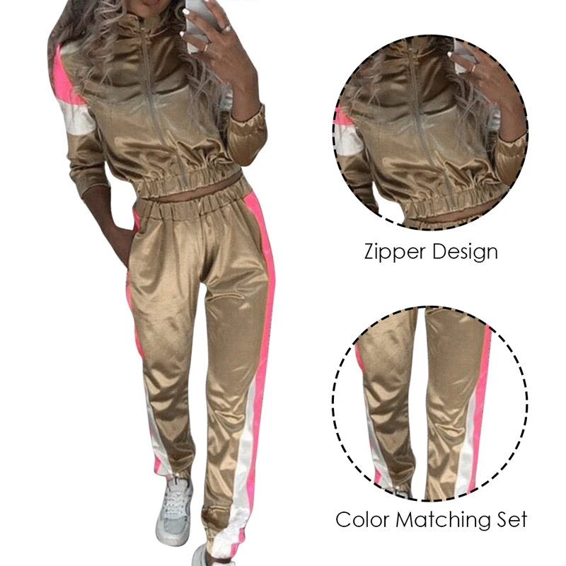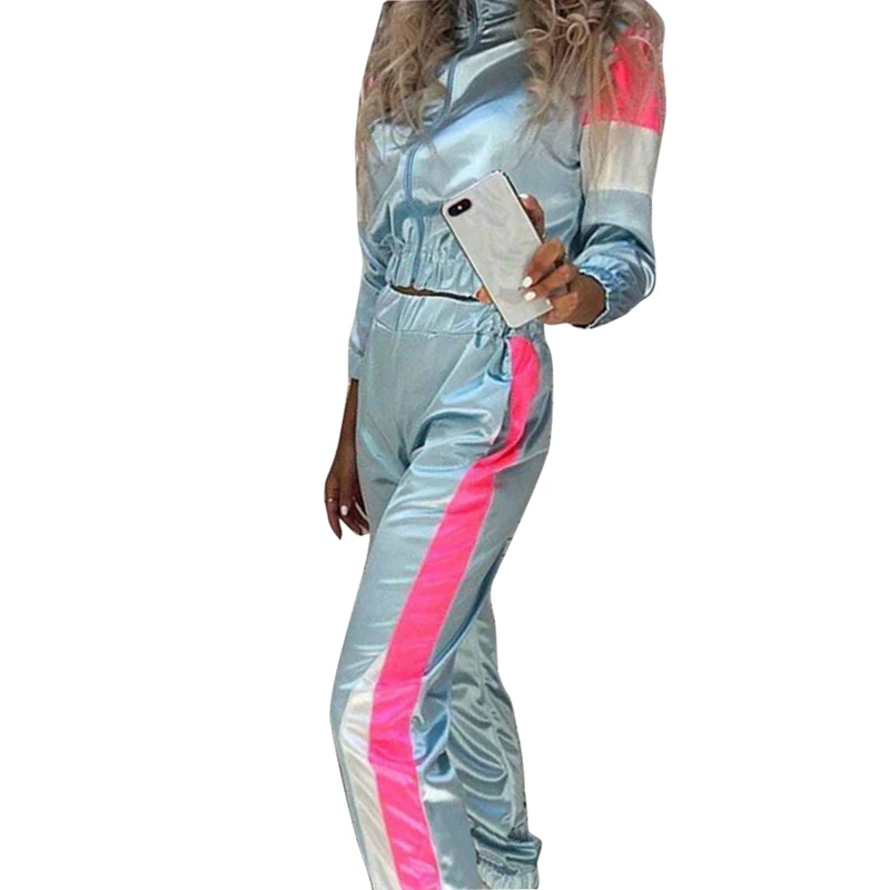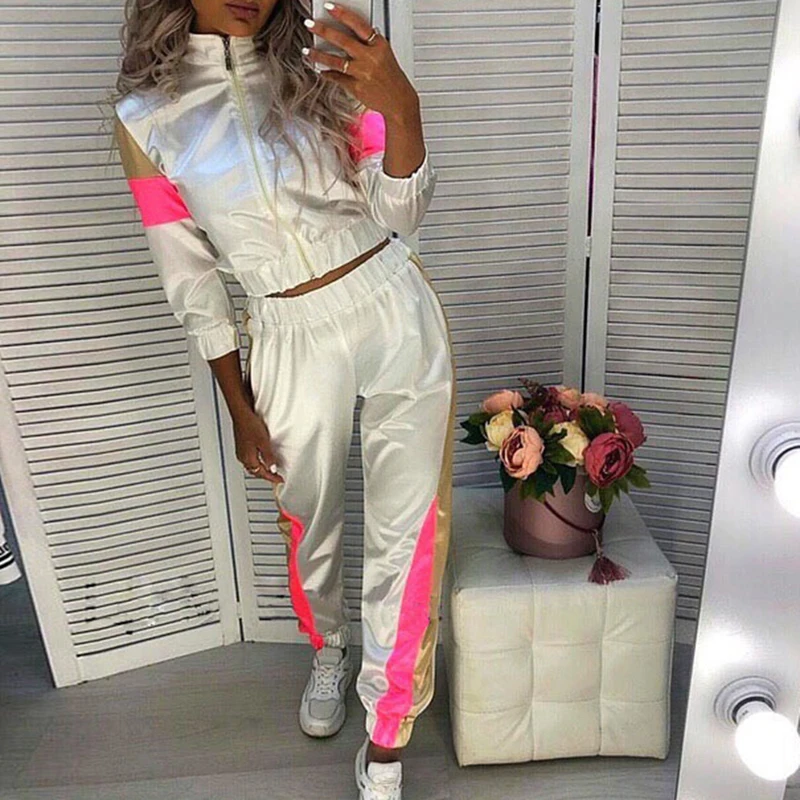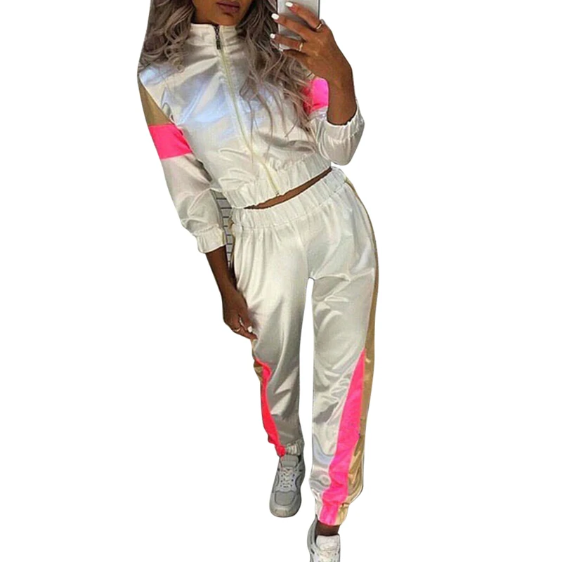 Светоотражающий спортивный костюм; спортивный костюм с длинным рукавом; укороченный топ; повседневные брюки; комплект с нагрудным карманом на молнии; пуповина; рубашка; брюки с высокой талией