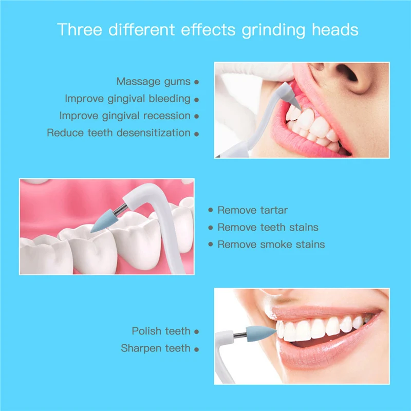 Звуковые вибрационные стоматологические инструменты, скорость шлифовальной головки может до 30000 раз в минуту. Высокоскоростная звуковая вибрация помогает эффективно удалять зубной камень на зубах и массировать десны. Супер яркий СВЕТОДИОДНЫЙ Светильник Освещает, позволяет точно чистить зубы. Поставляется с 4 шлифовальными головками, головки взаимозаменяемы, просты и удобны в использовании.