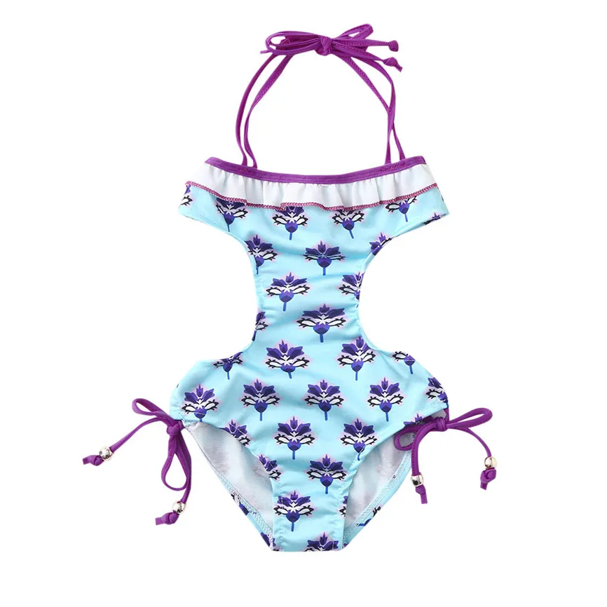 Летний купальник с оборками и цветочным принтом для маленьких девочек; Купальник с открытой спиной; Комбинезон