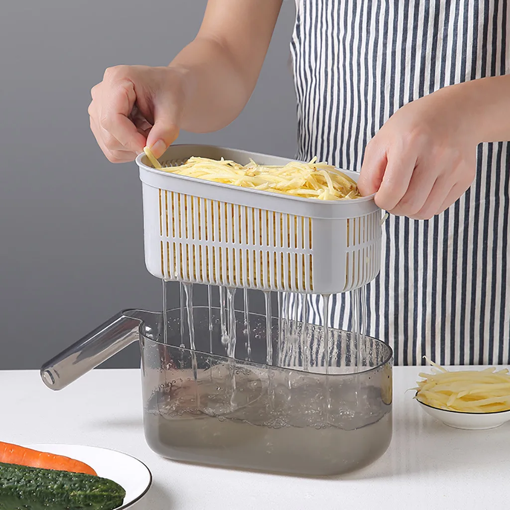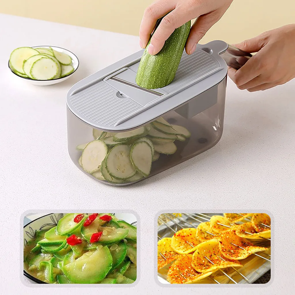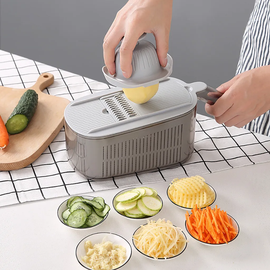 Наименование товара: измельчители и Слайсеры Тип: инструменты для фруктов и овощей Материал: АБС + нержавеющая сталь Посылка товара Размер: 29x11.8x8cm 100% новый и высокое качество! Предназначен для ежедневного использования, прочный и долговечный Противоскользящие резиновые ножки обеспечивают стабильность во время использования Легко чистить под светильник краску воды Регулируемый мандолин слайсер Этот ручной слайсер предлагает все функциональные возможности нескольких приборов с 6 взаимозаменяемыми лезвиями Подходит для моркови, огурца, картофеля, большинства овощей.