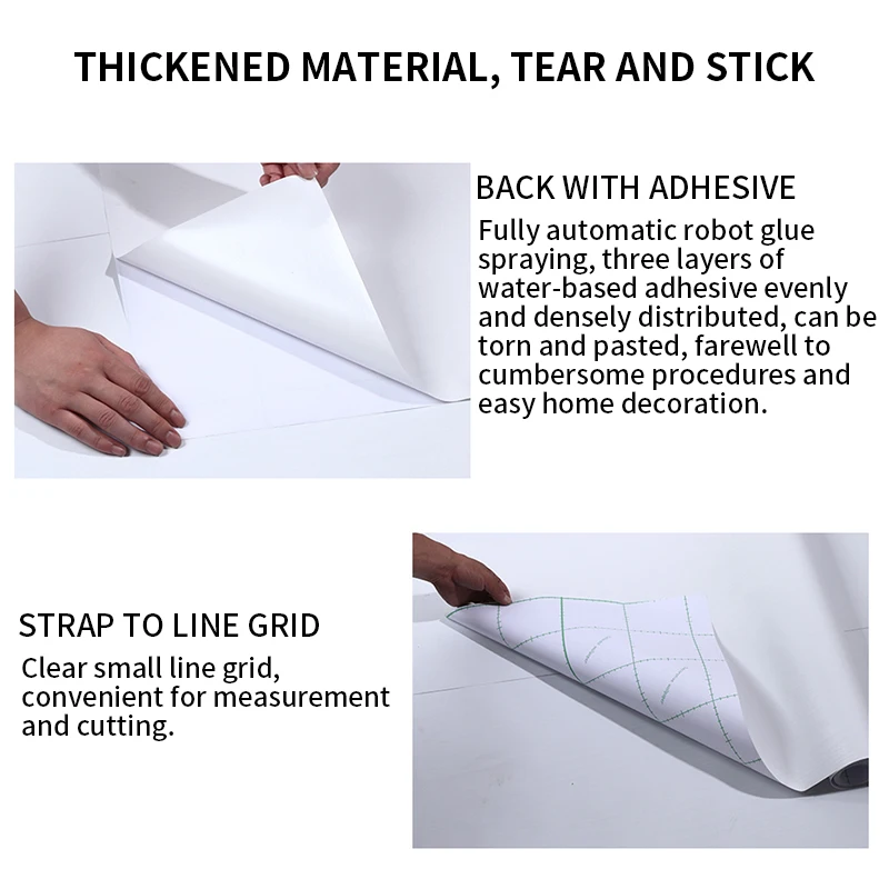 (3) Снимите клеевую бумагу и приклейте обои к поверхности.