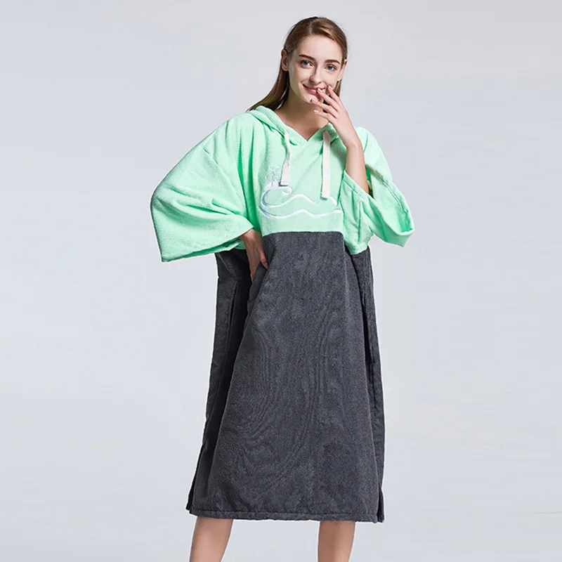 Пэтчворк сплошной цвет сушки халат пончо полотенце для плавания Кемпинг полотенце для мужчин и женщин 110х78см с карманом розовый