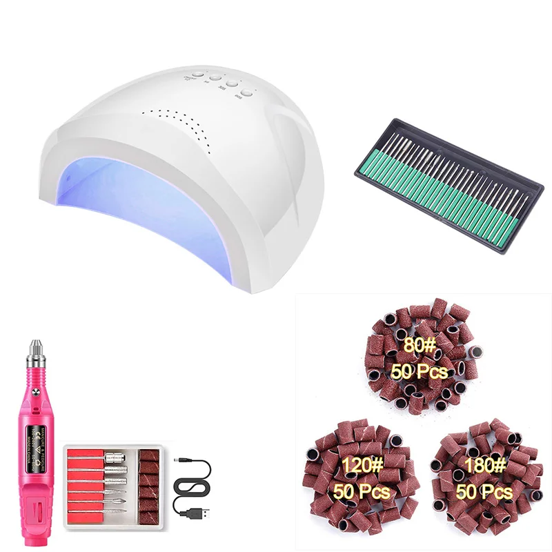 48 Вт ногтей лампа Искусство сверло профессиональное оборудование подходит с рулон наждачной бумаги полировщик головки сухие ногти УФ светодиодный светильник HIAISB