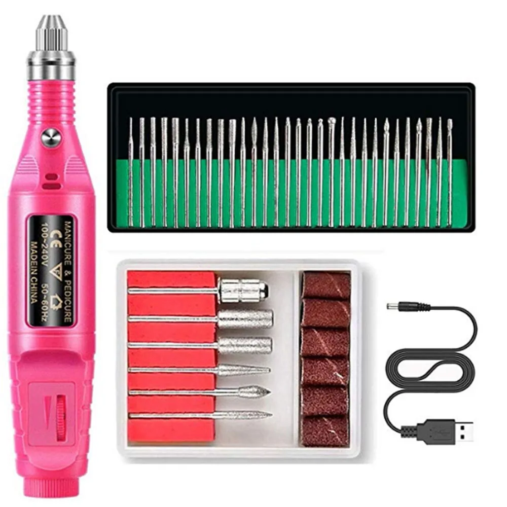 A: электрическая дрель для ногтей с деталями + 30 шт. Шлифовальная головка