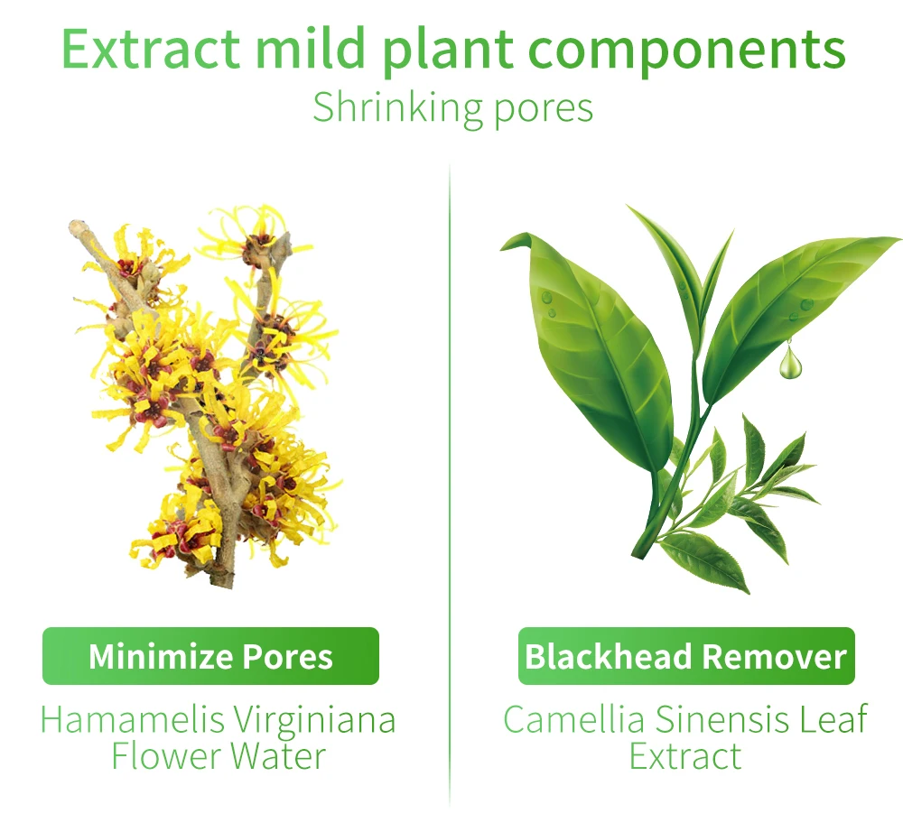 Сужение пор Уменьшает поры Вода Гамамелиса виргинского Инструмент для удаления чёрных точек Camellia Sinensis Leaf экстракт