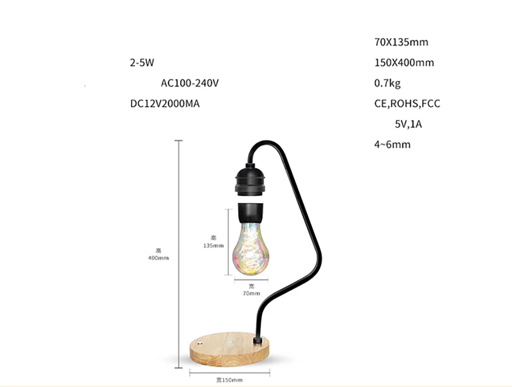 С функцией QI: вы можете беспроводную зарядку телефона на базе. Без функции QI: просто работайте как обычная лампа Светодиодный светильник с магнитной левитацией, беспроводная настольная лампа, креативная новинка, подарок, Волшебная черная технология, наука гик, невероятная сенсорная Затемняющая выставка Характеристика: 1. Беспроводная передача энергии, низкое энергопотребление и энергосбережение, идеально подходит для креативных дисплеев или украшения студии, офиса, дома, спальни, гостиной. 2. Функция защиты от отключения питания, предотвращает падение и поломку лампы. Описание: Тип вилки: штепсельная вилка европейского стандарта, штепсельная вилка британского стандарта, штепсельная вилка австралийского стандарта, штепсельная вилка американского стандарта Материал: стекло + дерево + нержавеющая сталь Лампа Размеры: D7cm/2,76 дюйма * H13cm/5,12 дюйм (ов) Вес продукта: 0,7 кг Напряжение: DC12V Мощность: 2-5 Вт Модель переключателя: сенсорное управление Посылка включает в себя: 1 x Магнитный левитирующий светильник Держатель-1 шт. 1 х адаптер питания 1 x Руководство пользователя