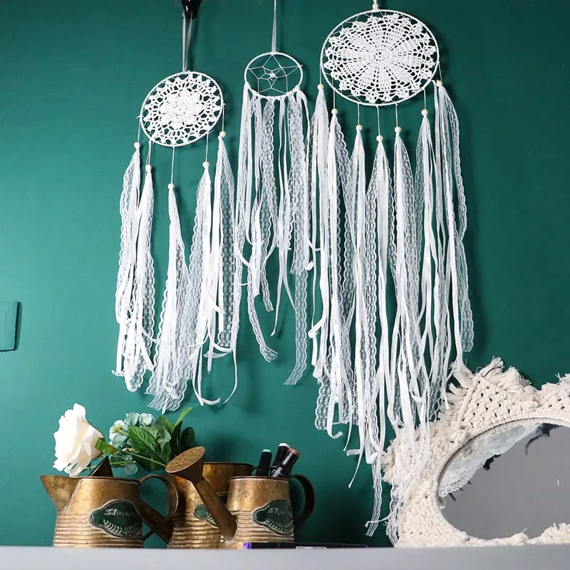 Ловец снов-кошмар проходит через отверстия и выходит из окна; Хорошие сны находятся в ловушке в Интернете, сползают перья спящему человеку. Цвет: белый Размер: как показано на картинке Упаковка включает: 1 шт.