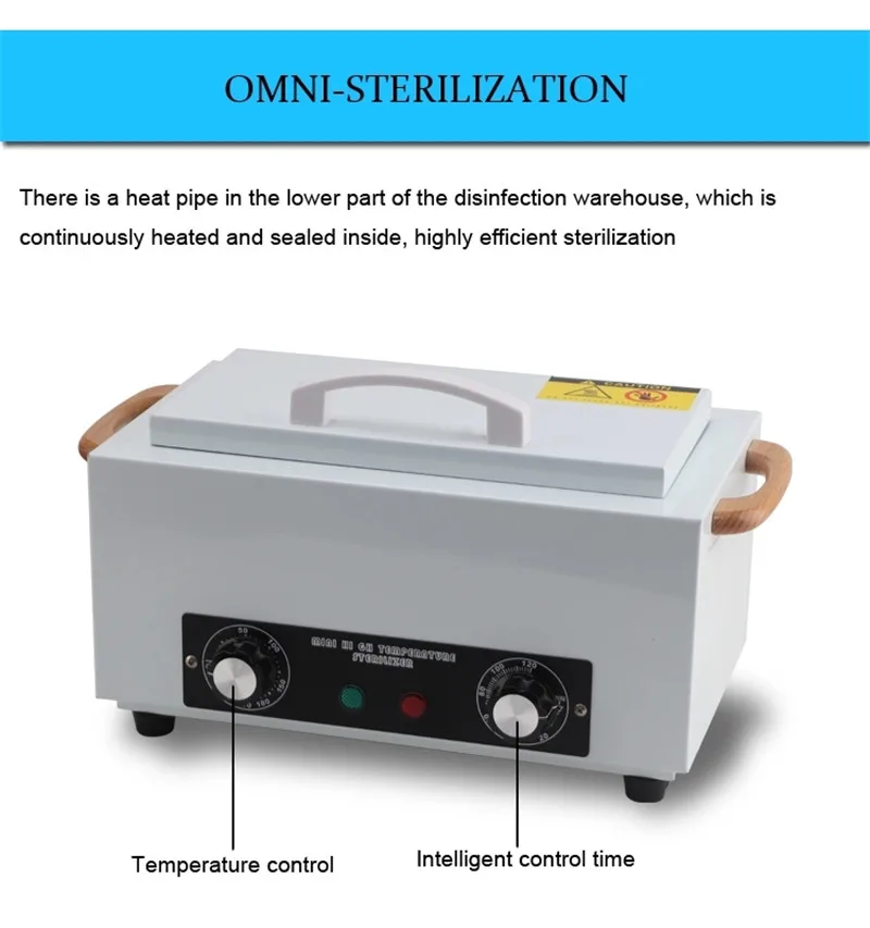 1. Высокотемпературные средства для дезинфекции стерилизационного шкафа. Напряжение: 110-220 В, инструкции, которые вы получите, показывают 110 В или 220 В. Пожалуйста, не стесняйтесь использовать их. 2. Использование высокотемпературной стерилизации, соответствует медицинским стандартам, быстро и комплексно. 3. Температура может достигать 50 - 220 градусов Цельсия, емкость 2000 мл и дезинфекция для небольших косметических или медицинских инструментов, для обеспечения безопасности и здоровья клиентов. 4. Характеристика магнитной индукционной системы переключения. 5. Подходит для профессионального или личного использования.