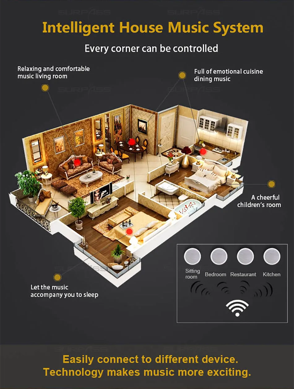 ● Идеально подходит для использования в фоновых музыкальных площадках, охватываемых сигналами Wi-Fi.