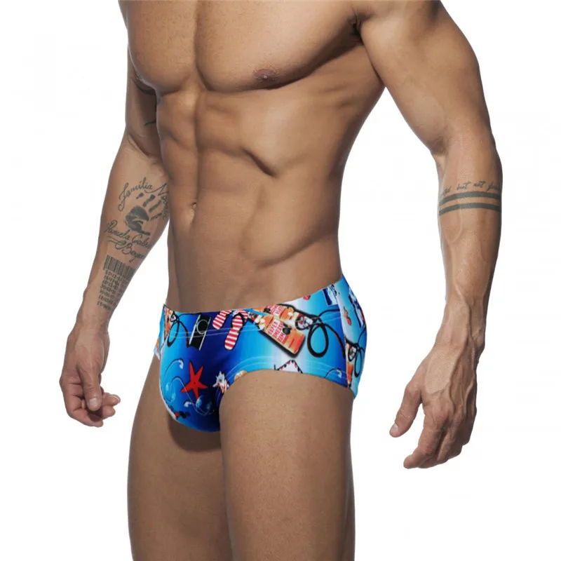 Мужская купальная одежда с пуш-ап принтом, купальный костюм, плавки с низкой талией, Летний Мужской купальный костюм, быстросохнущая пляжная одежда
