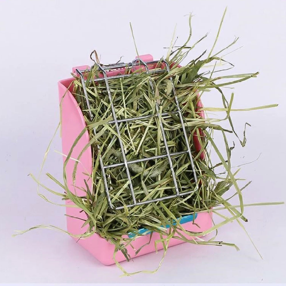 Весеннее устройство для подачи сена с кроликом, контейнер для хранения сена, контейнер для чистой еды, весенний контейнер для домашних животных, каркас для морской свинки, корзина для травы, пружинный металлический кронштейн