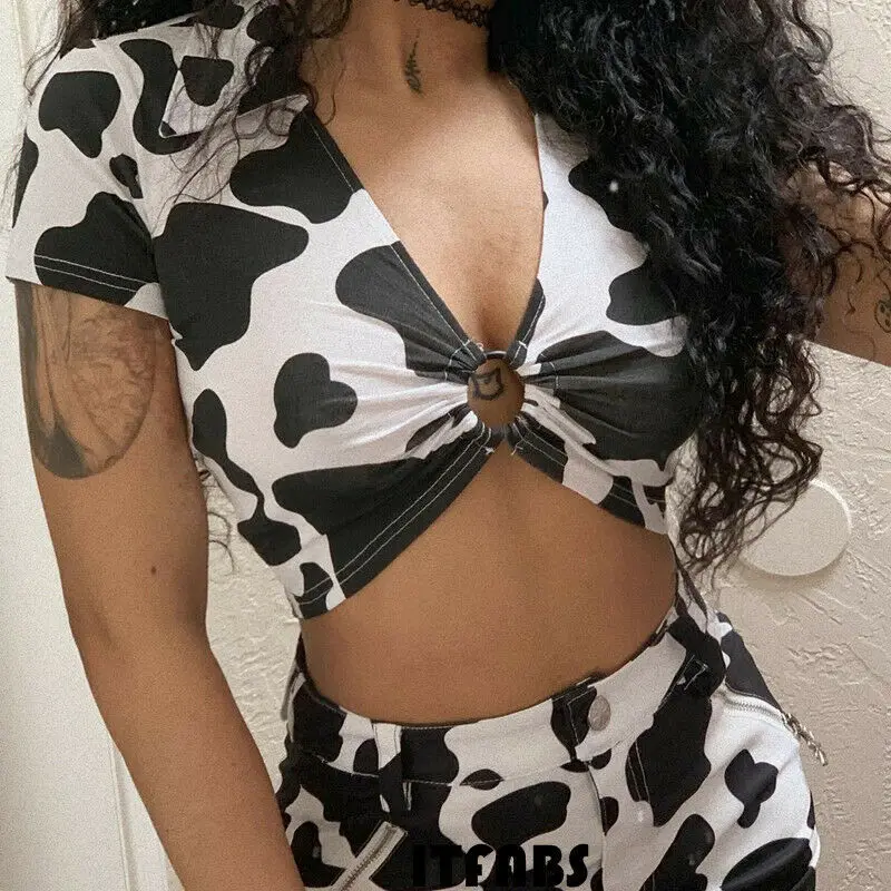 Женский короткий топ с коротким рукавом, привлекательный укороченный топ с коротким рукавом и глубоким V-образным вырезом, уличная модная одежда, Hirigin модные
