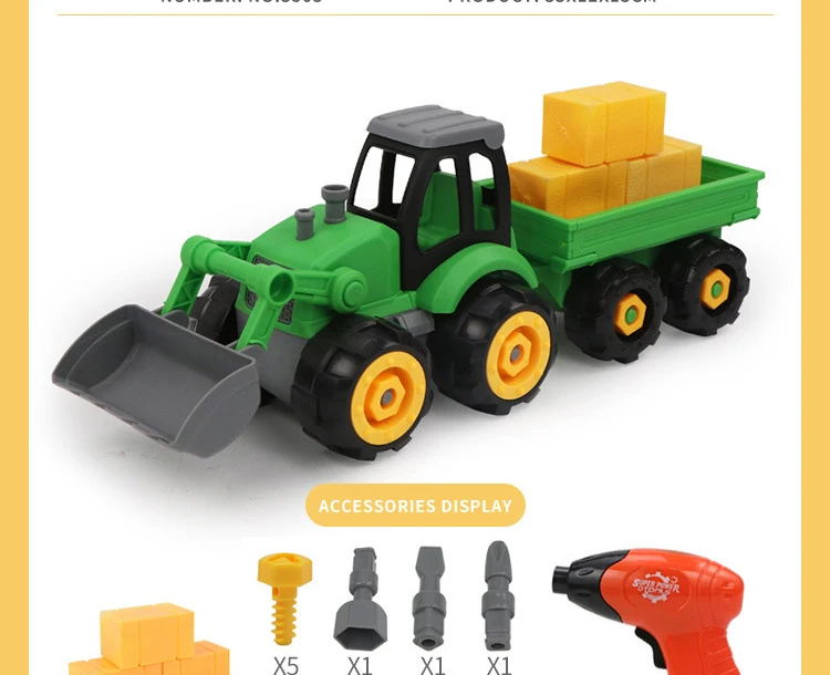 Посылка 1: автомобиль с коровой и инструментами Посылка 2: автомобиль с деревом и инструментами Посылка 3: автомобиль с соломенной сумкой и инструментами Посылка 4: автомобиль с тремя различными контейнерами и инструментами без пистолетов