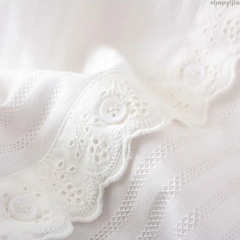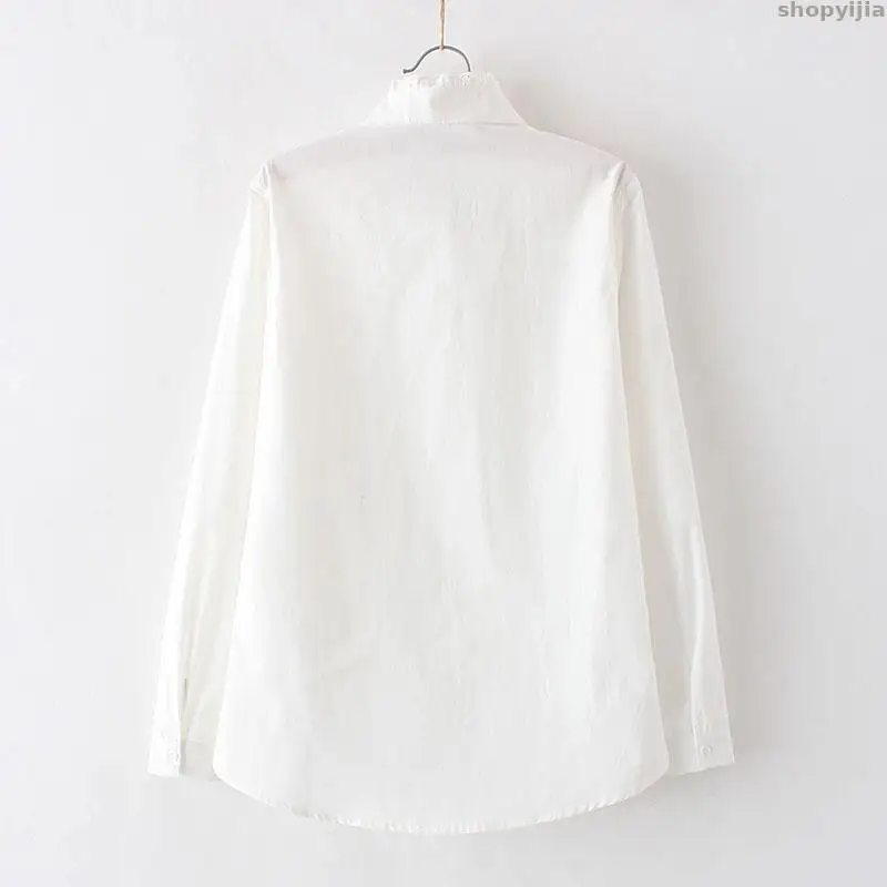 Женские кружевные белые рубашки, лето-весна, с длинным рукавом, с оборками, 100% хлопок, тонкая мягкая блузка, топы