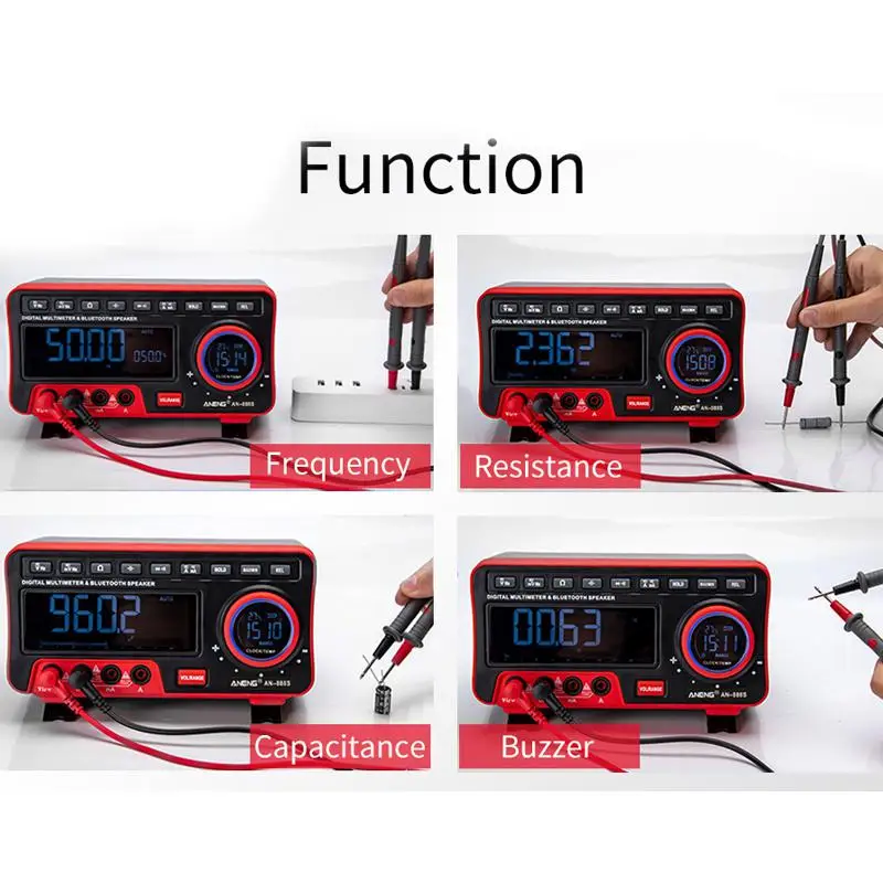2. Цифровой мультиметр и BT динамик, он также оснащен часами, будильником, Bluetooth для воспроизведения музыки, температурным дисплеем.