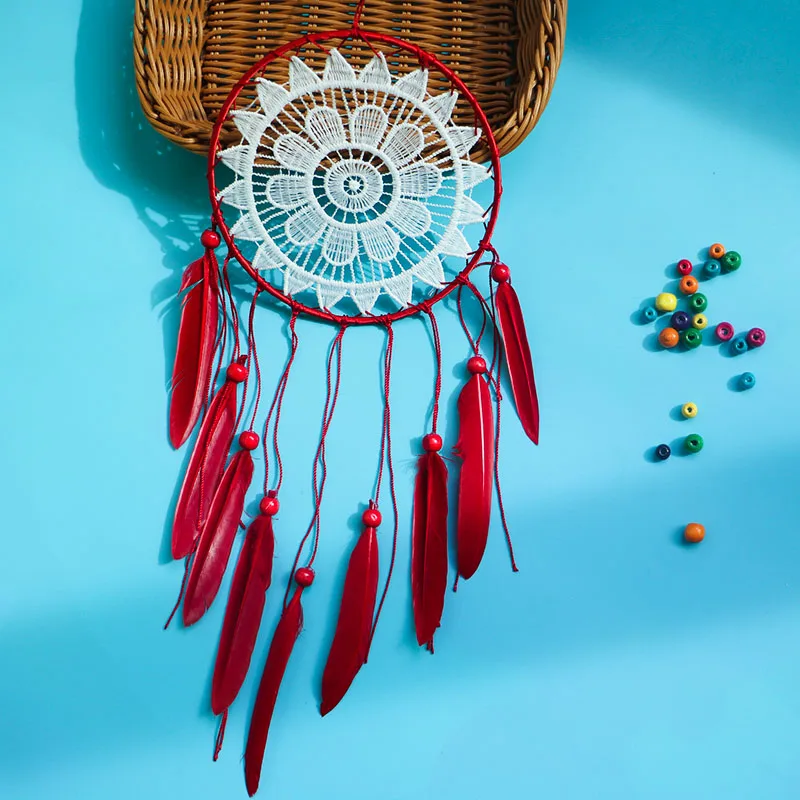Красный Ловец снов креативные перья украшение дома кулон