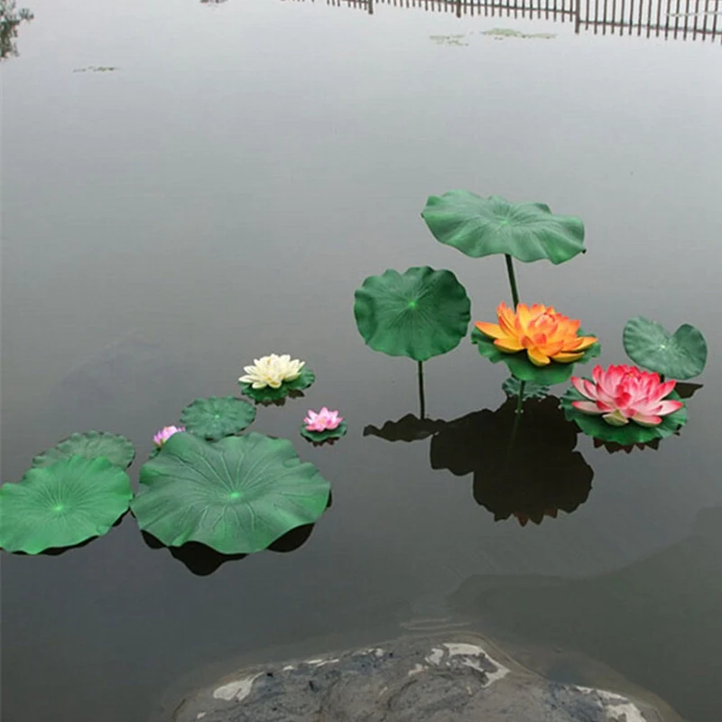 Искусственный Поддельный Лотос, имитация листьев лилии, 1 шт., плавающий цветок, сад, бассейн, пруд, растение, украшение для дома