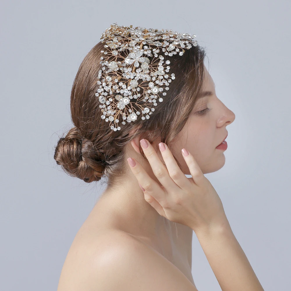TRIXY H240-G, роскошный кристалл, свадебный обруч для волос, ручная работа, свадебный головной убор, потрясающие вечерние украшения для волос для невест