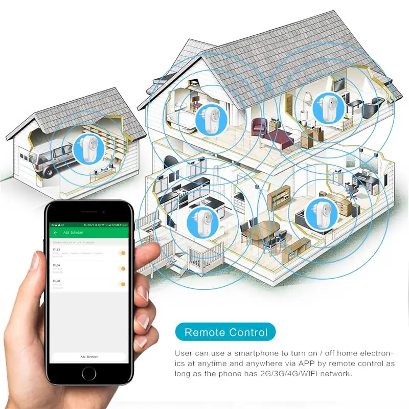 Пульт дистанционного управления. Используйте r можно использовать смартфон для включения/выключения домашней электроники в любое время и в любом месте с помощью приложения с помощью пульта дистанционного управления до тех пор, пока телефон имеет 2G/3G/4G/WIFI сеть. Поддерживает функцию отключения сети. Настройки могут продолжать работать, даже если сеть выключена.