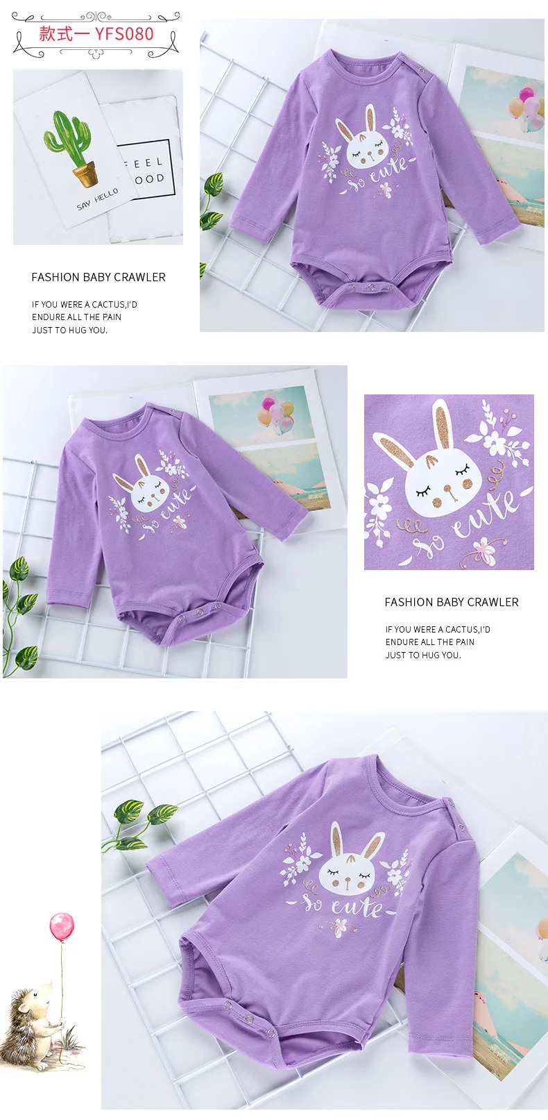 Products Description : 1. Colors : as the picture 2. MOQ = 1 pc,material is rib cotton,cute and soft design romper 3. Pack : 1 piece in 1 opp bag. this romper for baby girls party and holiday or daily wear. cute design