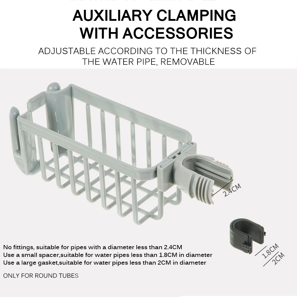 Функции Стойка для кранов имеет дизайн темного крючка, который может легко разместить вещи с ремнем. Мелкие предметы подходят для хранения на кухне или в ванной. Экономия пространства Стойка для кранов может быть установлена на кран, экономит ваше пространство и сохраняет вашу кухонную раковину аккуратной и сухой. Сильный Подшипник нагрузки Стойка для кранов в основном изготовлена из полипропиленовых материалов, поверхность прочная, поверхность гладкая, а нагрузка прочная. Область применения Удобная Мойка для кухни, можно хранить губку, скруббер, губку, мыло, жидкость для мытья посуды и так далее. Прочный Стойка для кранов изготовлена из экологически чистого PP материала, который устойчив к ржавчине, прочный, прочный и легко чистится. Простая установка Во-первых, Защелкните пряжку к трубке из нержавеющей стали. Затем установите держатель губки на кран и затяните резьбовую крышку.