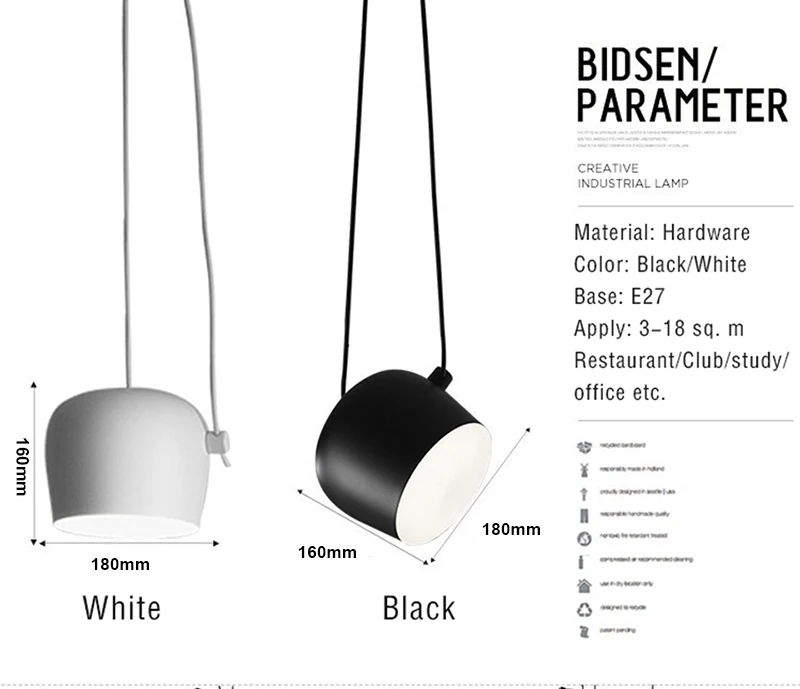 Размеры: абажур D 18 см x H 16 см, длина кабеля для каждой головы составляет 3 м (длина может быть настроена)