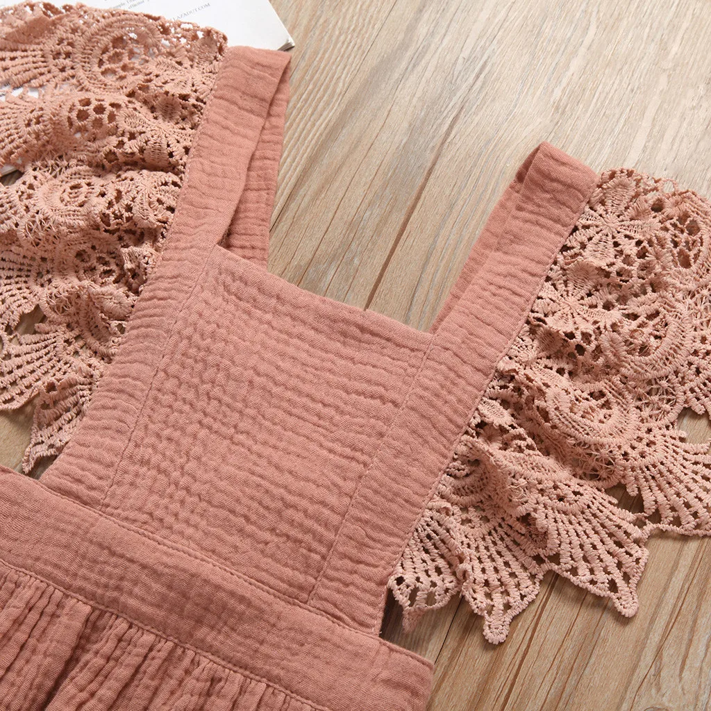 Однотонное кружевное платье принцессы без рукавов с цветочным рисунком для маленьких девочек