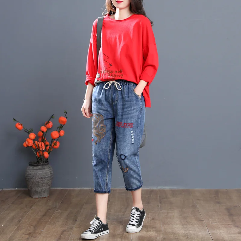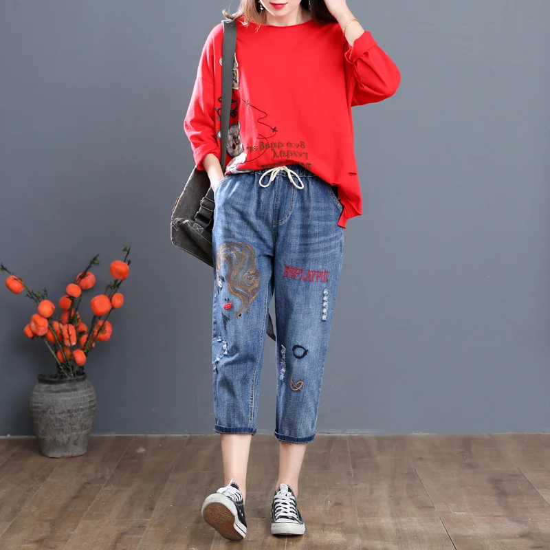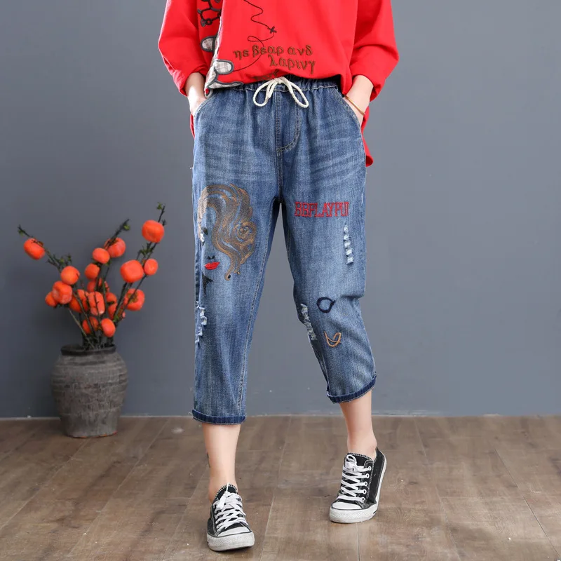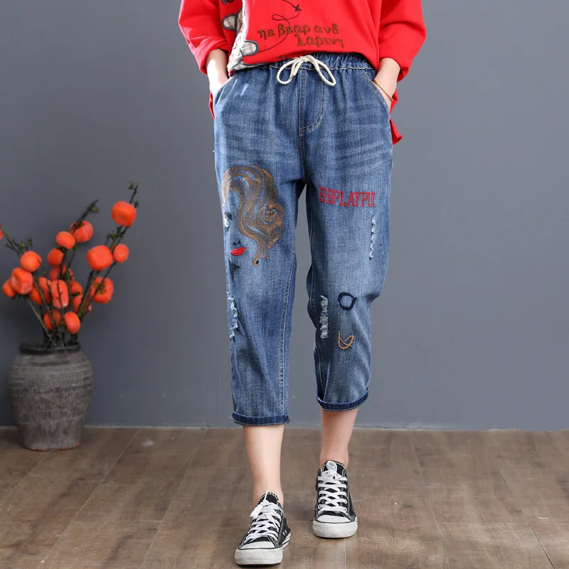 Летние корейские модные рваные джинсы с вышивкой