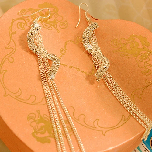 Women's Fashion Earrings S-Shape Long Tassels Rhinestone Hook Dangle Linear Earrings pendientes mujer kolczyki damskie