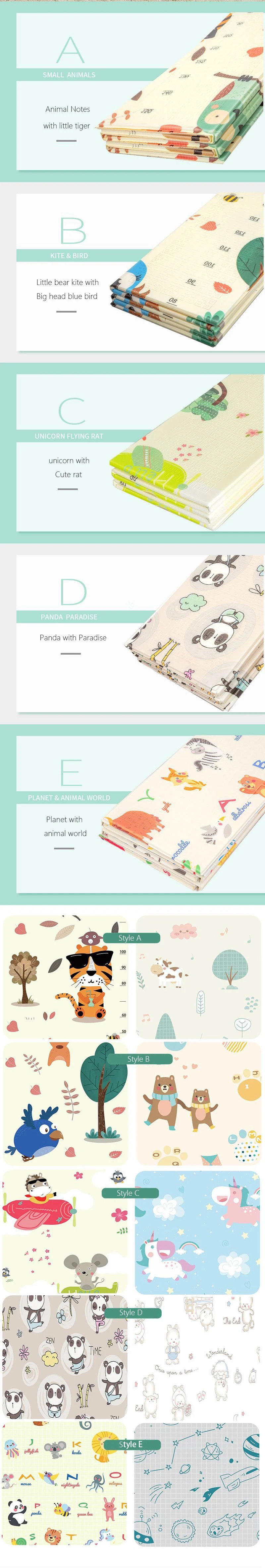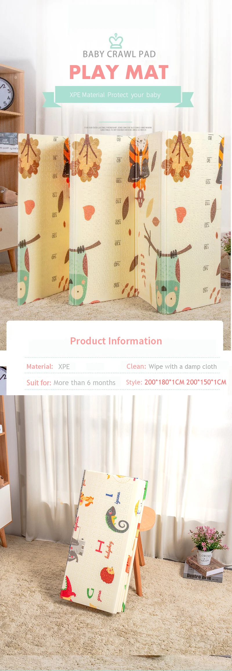 Название продукта: складной детский игровой коврик материал: XPE Толщина: 1 см (0,4in) Упаковка: без сумки и коробки Размер: 180x200x1 см Способ очистки: аккуратно протрите влажной тканью или влажной полотенцей