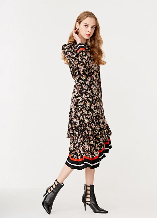 Женская винтажная юбка миди с принтом подсолнухов черная плиссированная