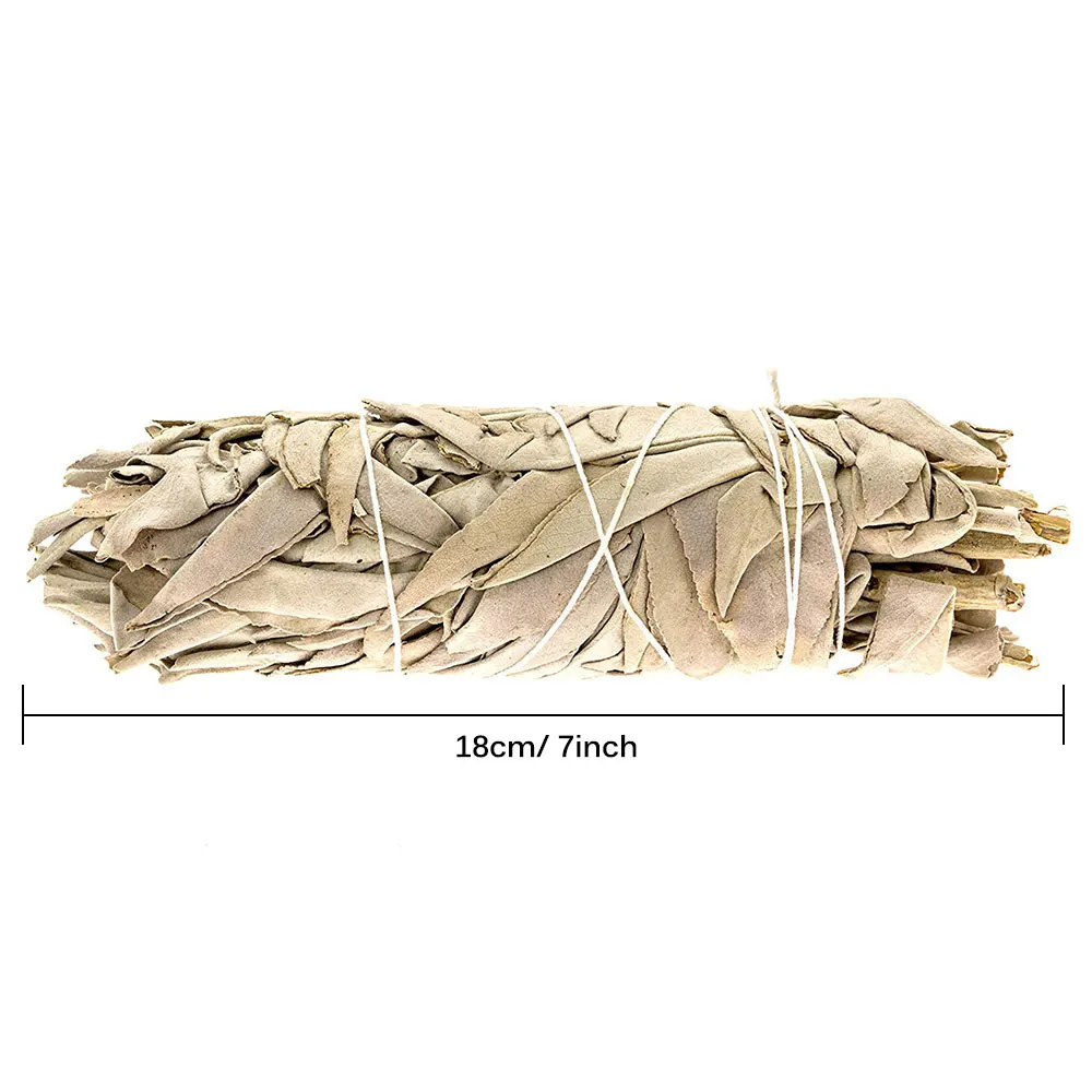 Белая палочка для шалфея сделана в 18 см/7,07 дюйма, которая может непрерывно гореть в течение 2 часов. Вы можете сжигать его в течение половины часов каждый раз. Таким образом, один кусок белой палочки шалфея используется для нескольких раз.