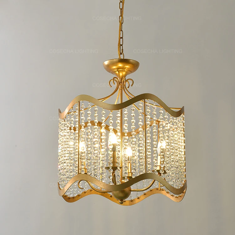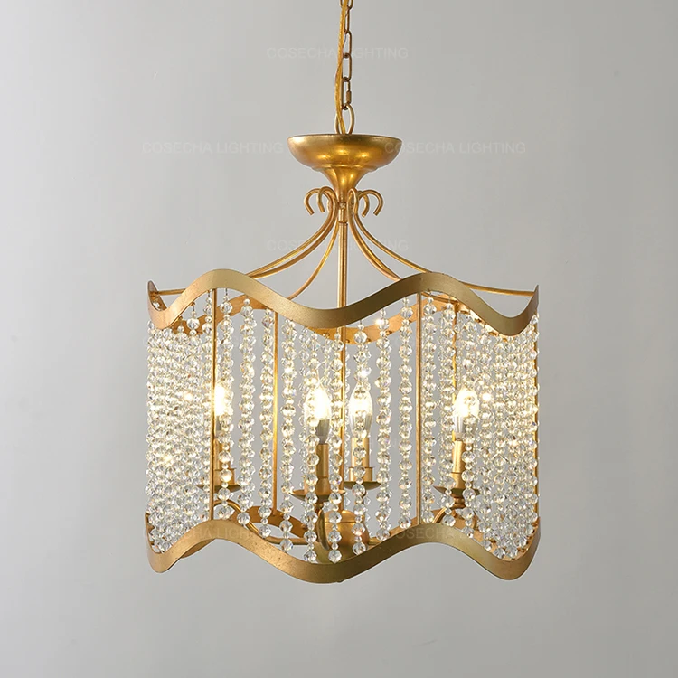 Бренд: COSECHA Тип: 6758 Гнездо: E14 * 4 Размер: D510 * h580мм Цвет: золото Материал: железо + кристалл Площадь: гостиная, спальня, столовая, Читальная комната...