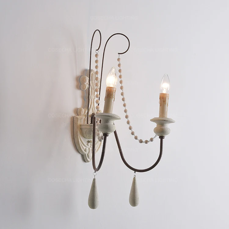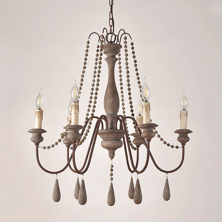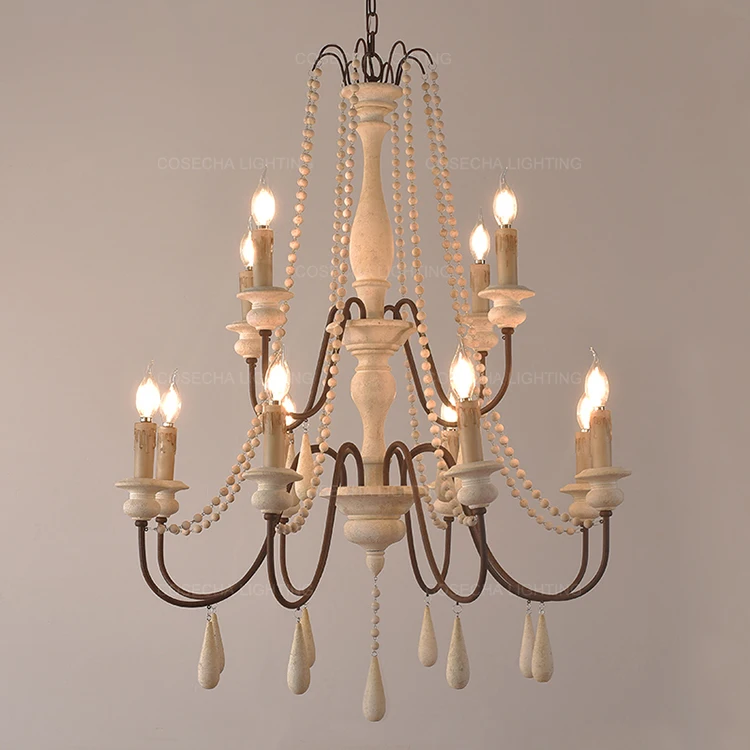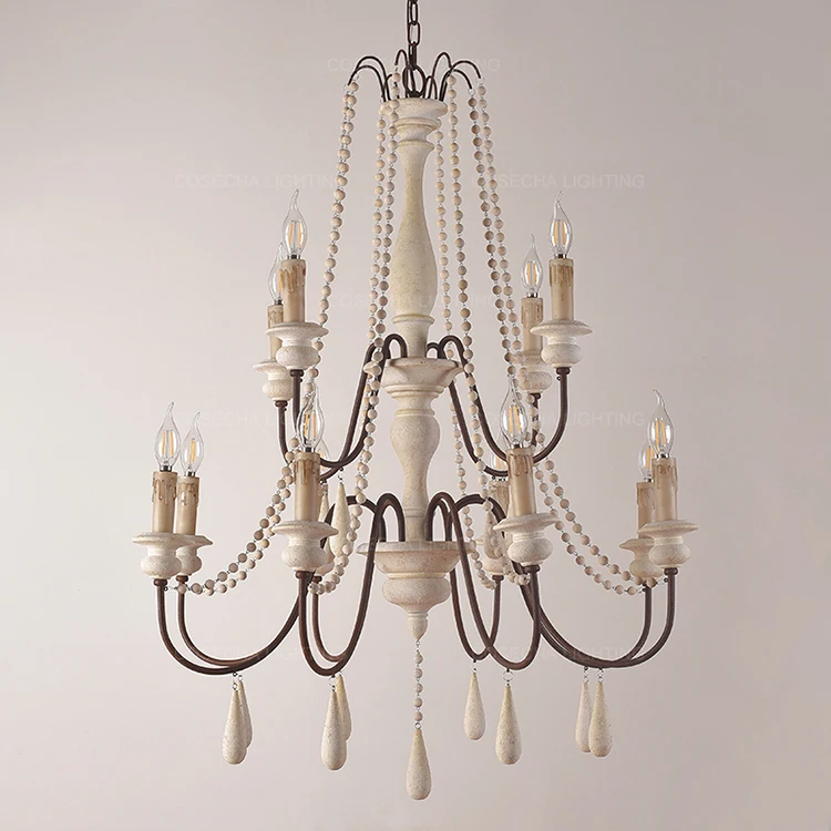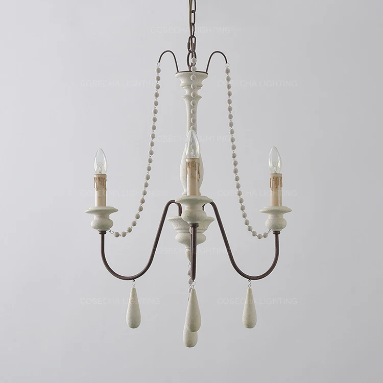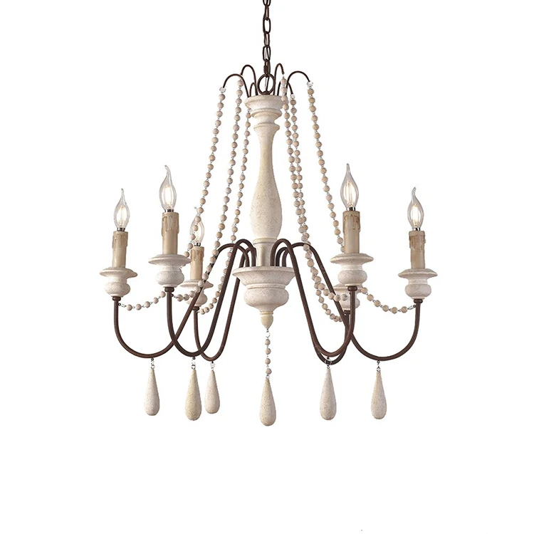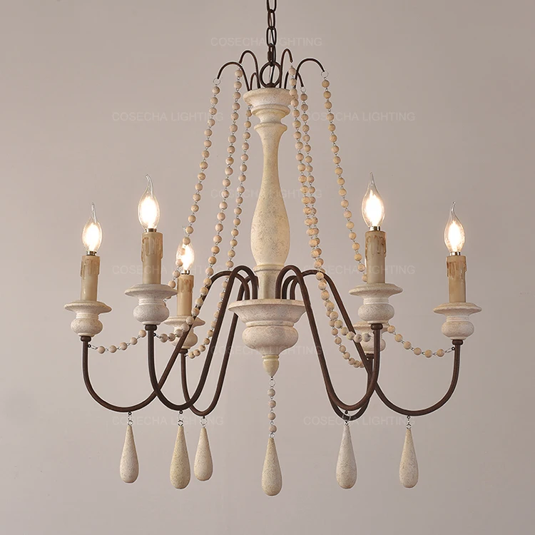 Винтажные белые деревянные бусины люстра светильник ing фойе подвеска блеск ретро элегантная люстра Красивый лобби светильник Декор Лофт