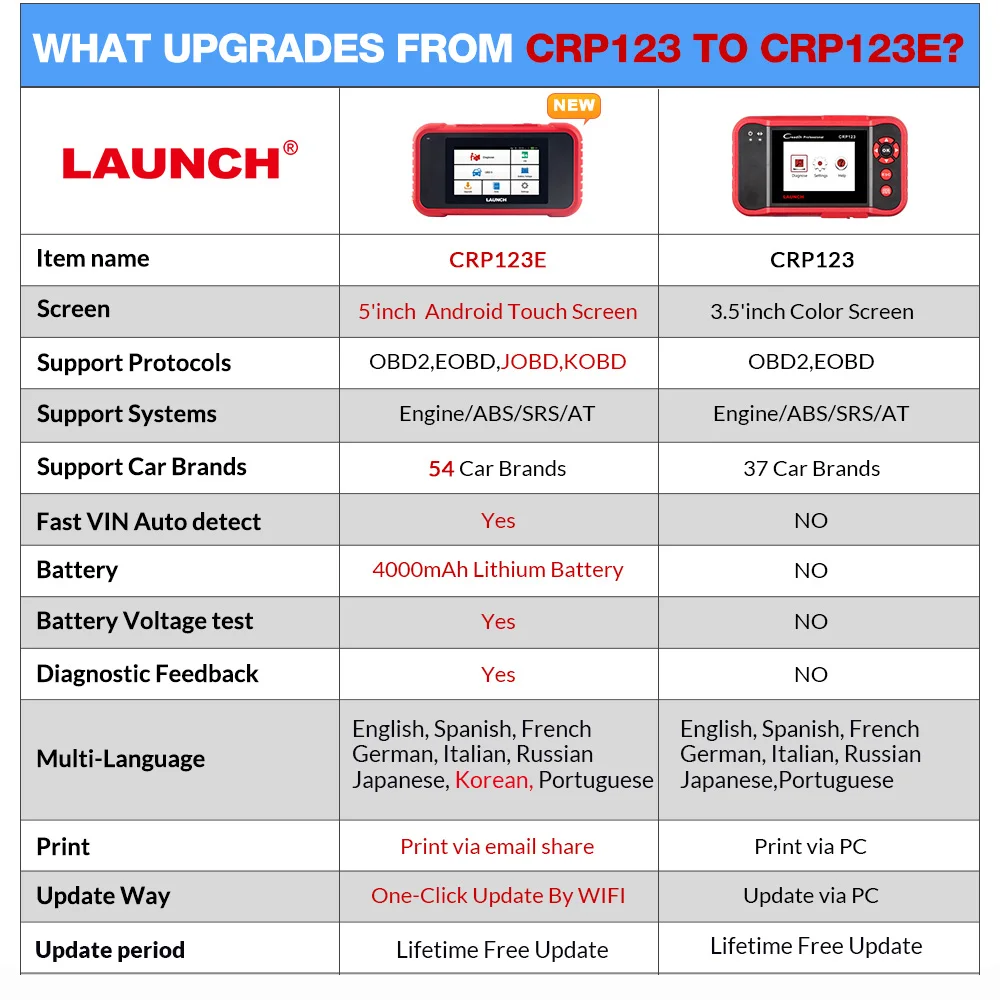 LAUNCH CRP123E OBD2 профессиональные диагностические инструменты Поддержка двигателя/ABS подушка безопасности/SRS/тест на передачу Пожизненное бесплатное обновление