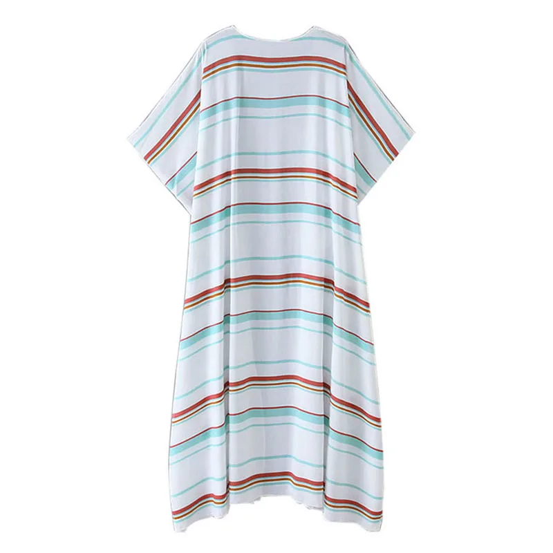 Длинный кардиган с принтом в полоску с расклешенными рукавами, который очень удобно носить. Когда вы идете на пляж, было бы приятно носить его как солнцезащитный крем.