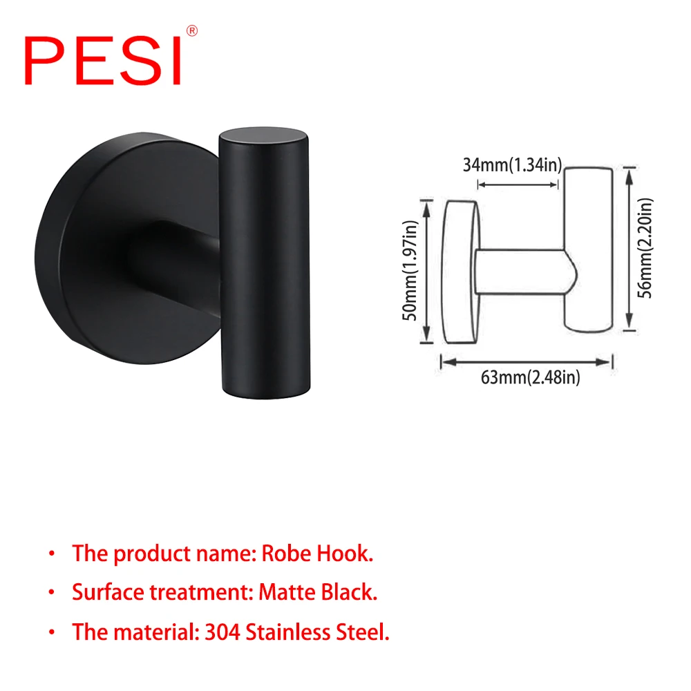 Крючок для халата, черный Крючок для ванной из нержавеющей стали, сумка для полотенец, шляпа, настенный двойной крючок для одежды, настенная вешалка для ванной.