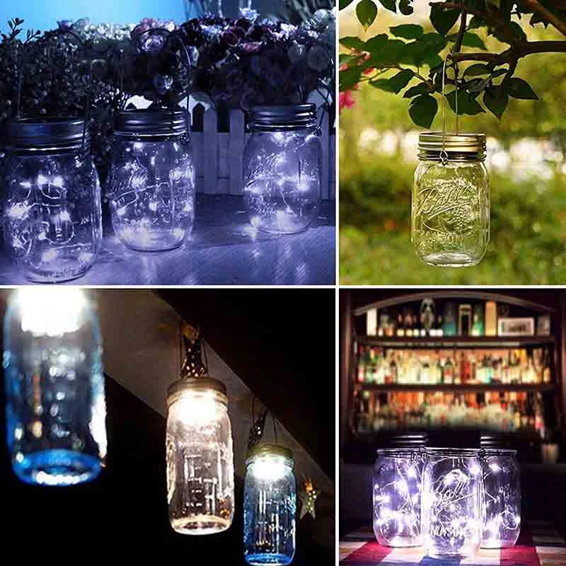 Новый-Солнечный свет крышки банки Mason, 20 светодиодный водонепроницаемый Фея Звезда светящаяся гирлянда с 6 вешалками (банка не входит в комплект), для Mason J