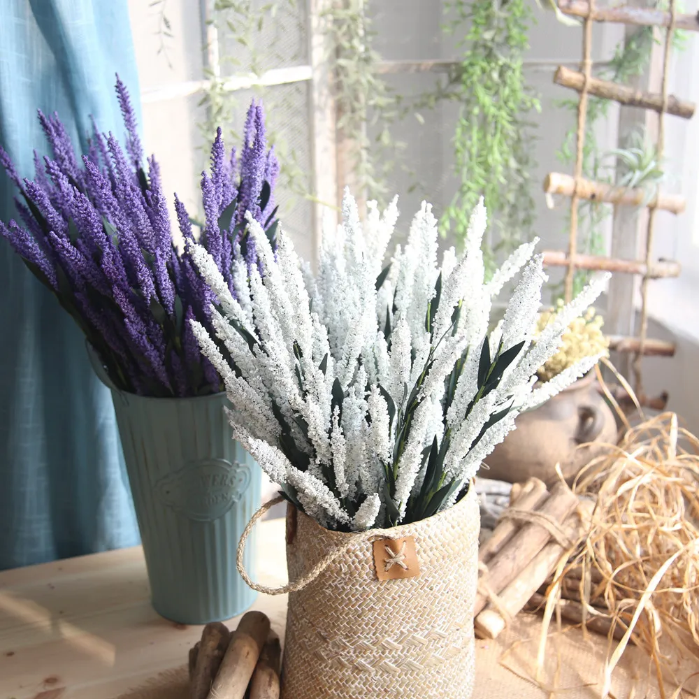12 головок Искусственные из ПЭ Лаванда искусственный цветок для свадьбы букет вечерние украшения для дома