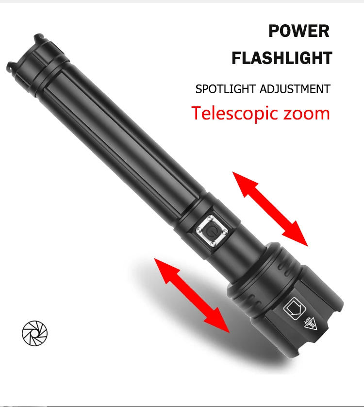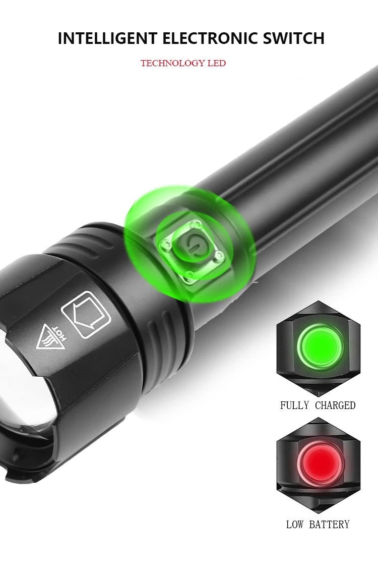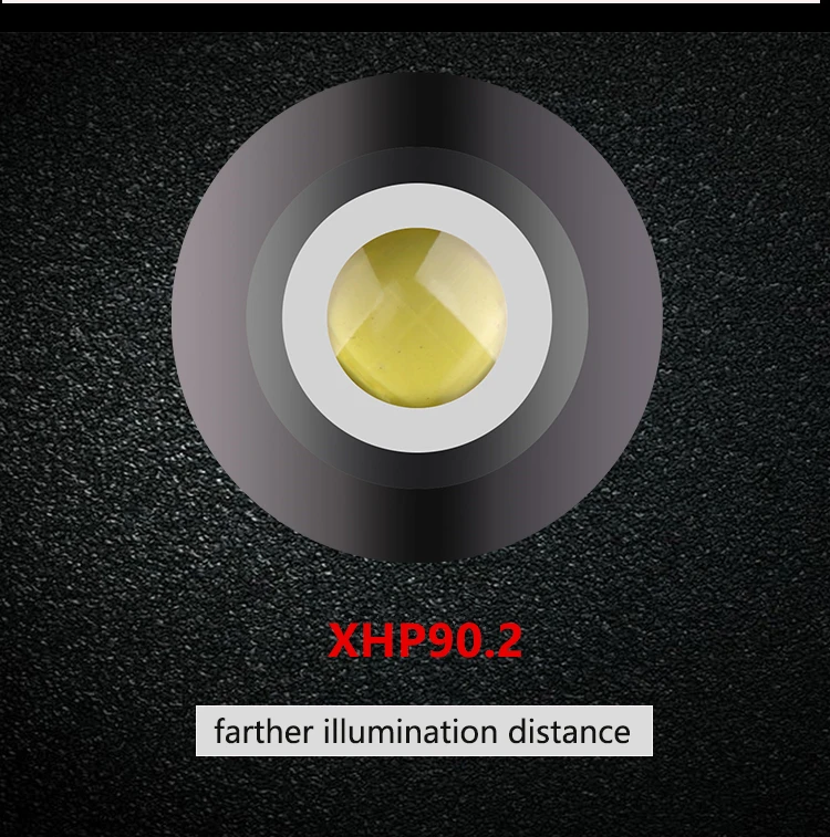 Мощный светодиодный фонарик XHP90.2, светодиодный фонарик с максимальным выходом до 5000 лм Увеличьте 2*18650 или 2*26650 аккумуляторный отсек, чтобы сделать время работы дольше. Дисплей емкости аккумулятора, телескопический зум Micro usb для компьютера, USB, Автомобильный USB, USB зарядка, фонарик Изготовлен из высококачественного алюминиевого сплава HAIII, прочный военный Жесткий анодированный Водонепроницаемый в соответствии с IPX-6, водонепроницаемость, может использоваться в дождливую погоду, но не может поставить его в воду Подходит для работы, охоты, скалолазания, рыбалки, кемпинга, активного отдыха и т. д. Ударопрочный до 2 метров Параметры продукта 3 режима: высокий, низкий, мигающий Название: фонарик XHP90.2 Модель светодиодный бусины: XHP90.2 Материал корпуса: алюминиевый сплав Масштабирование: Да Материал линз: выпуклая линза Цвет излучения: белый светильник 6000K Тип аккумулятора: перезаряжаемый аккумулятор 2*18650 или перезаряжаемый аккумулятор 2*26650 Зарядное устройство: Micro usb