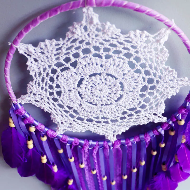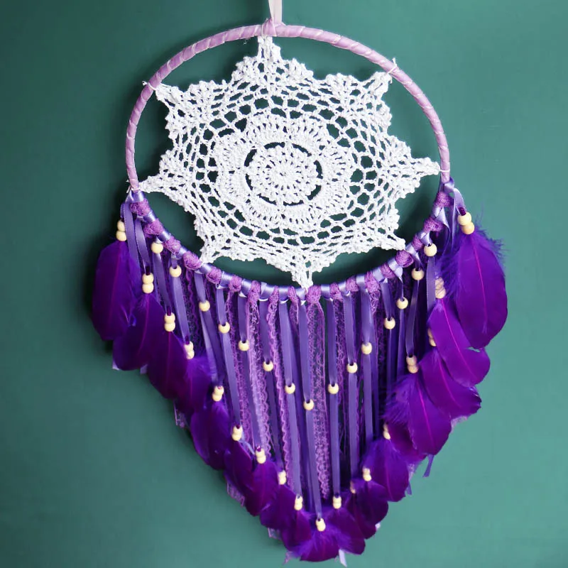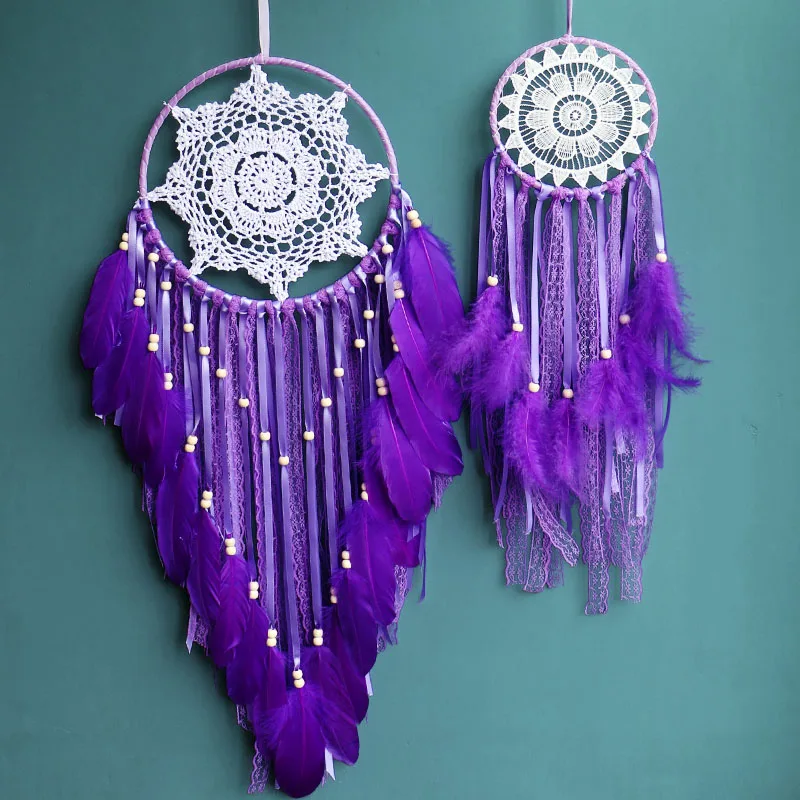 Домашний декор для сада, настенный Ловец снов, Настенный декор для детской комнаты, фиолетовое перо, большие Dreamcatchers, украшение для комнаты