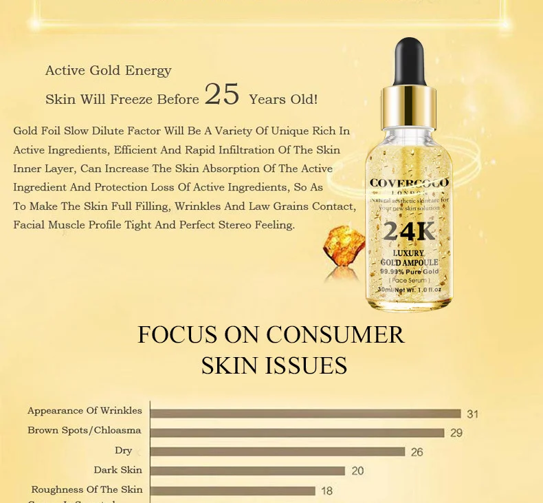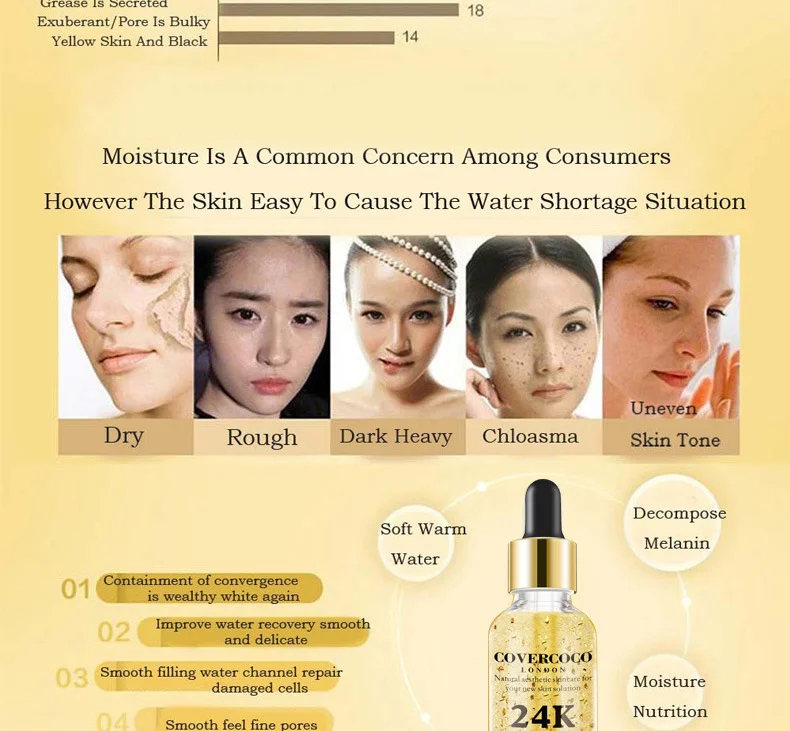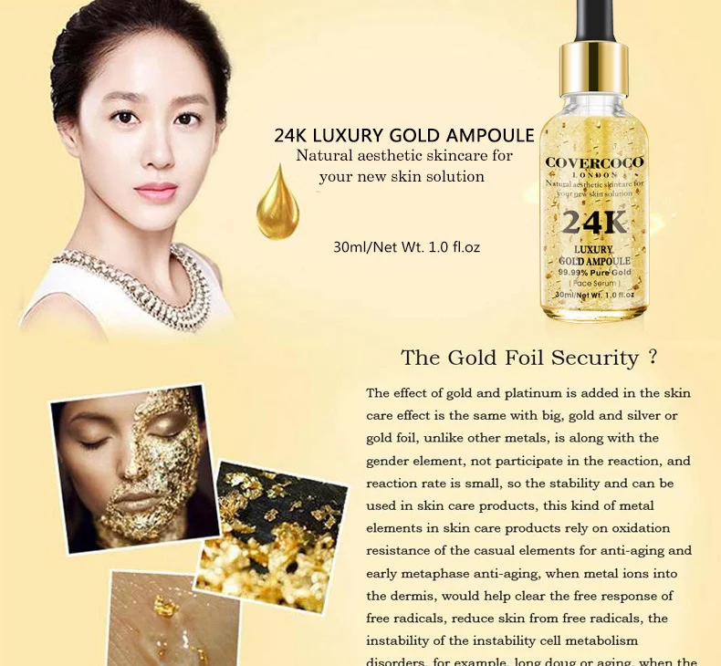 24K Золотая гиалуроновая кислота, сыворотка для лица, увлажняющая, усадочная, пористая, осветляет, Nicotinamide, уход за кожей, лифтинг, укрепляющая эссенция
