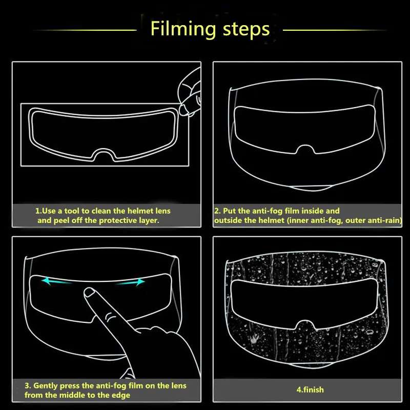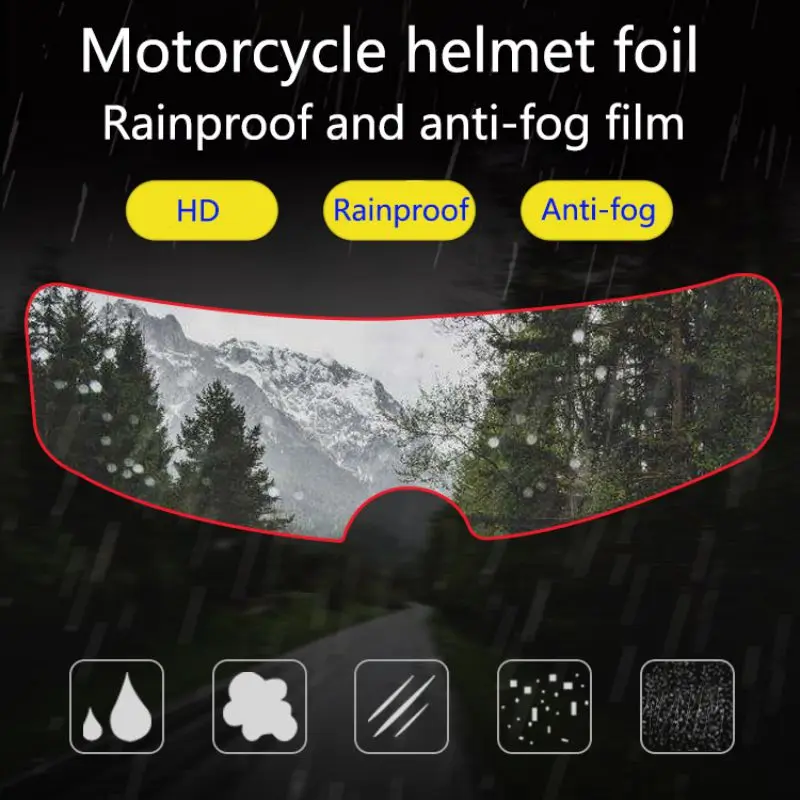 1. Универсальная противотуманная накладка на шлем с полной рамкой. 2. Прочный анти-туман более 5 лет. 3. Защищает зрение и кожу. 4. После того как дождь был влажным, он не уменьшит эффект Анти-тумана, после протирания его тканью, его можно использовать непрерывно. 5. Подходит для шлемов и открытых шлемов. 6. Долговечная противотуманная: противотуманная пленка изготовлена из специального материала молекулярной структуры и имеет функцию анти-тумана.