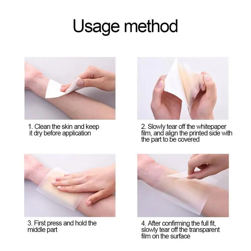 2. Полупрозрачный тип, не для покрытия татуировок, пятен, подходит только для небольших царапин. (Не подходят только плоские детали, лица, соединения и изогнутые детали. Те, у кого неровности, не подходят.)