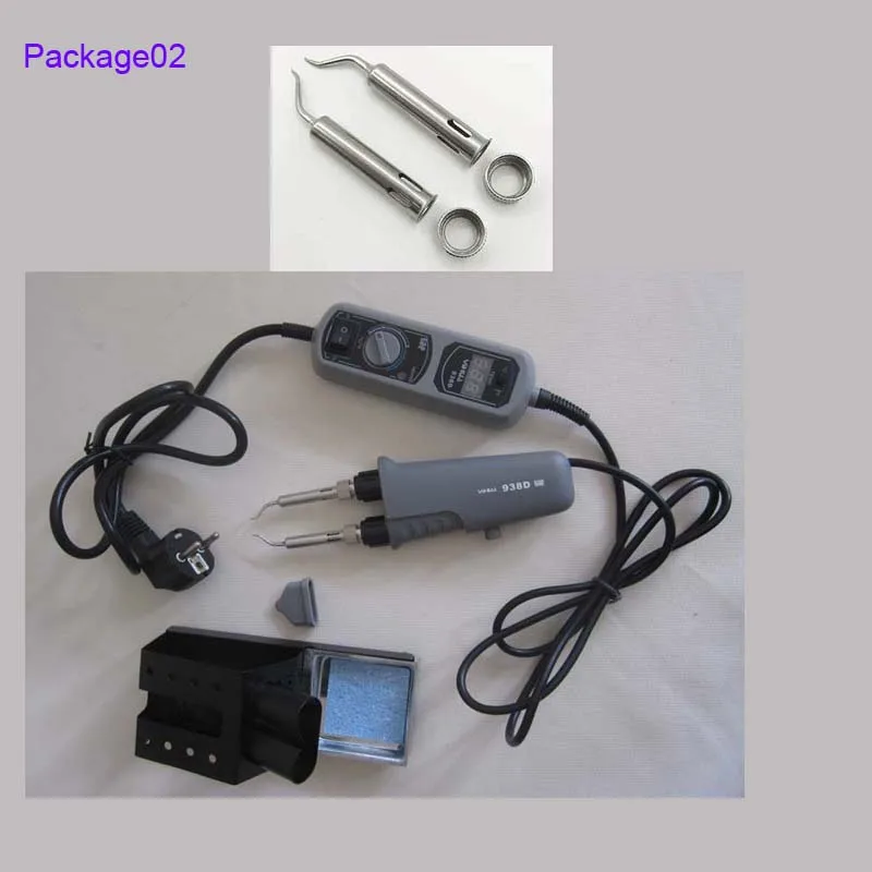 Package01 включает в себя весь комплект только продукта, как указано ниже. Упаковка 02 включает 1 дополнительную пару наконечников. Упаковка 03 включает 2 дополнительных пары наконечников. 1 x 938D Пинцет паяльник 220В с европейской вилкой 1 x подставка для паяльника (с губкой) 1 х Инструкция