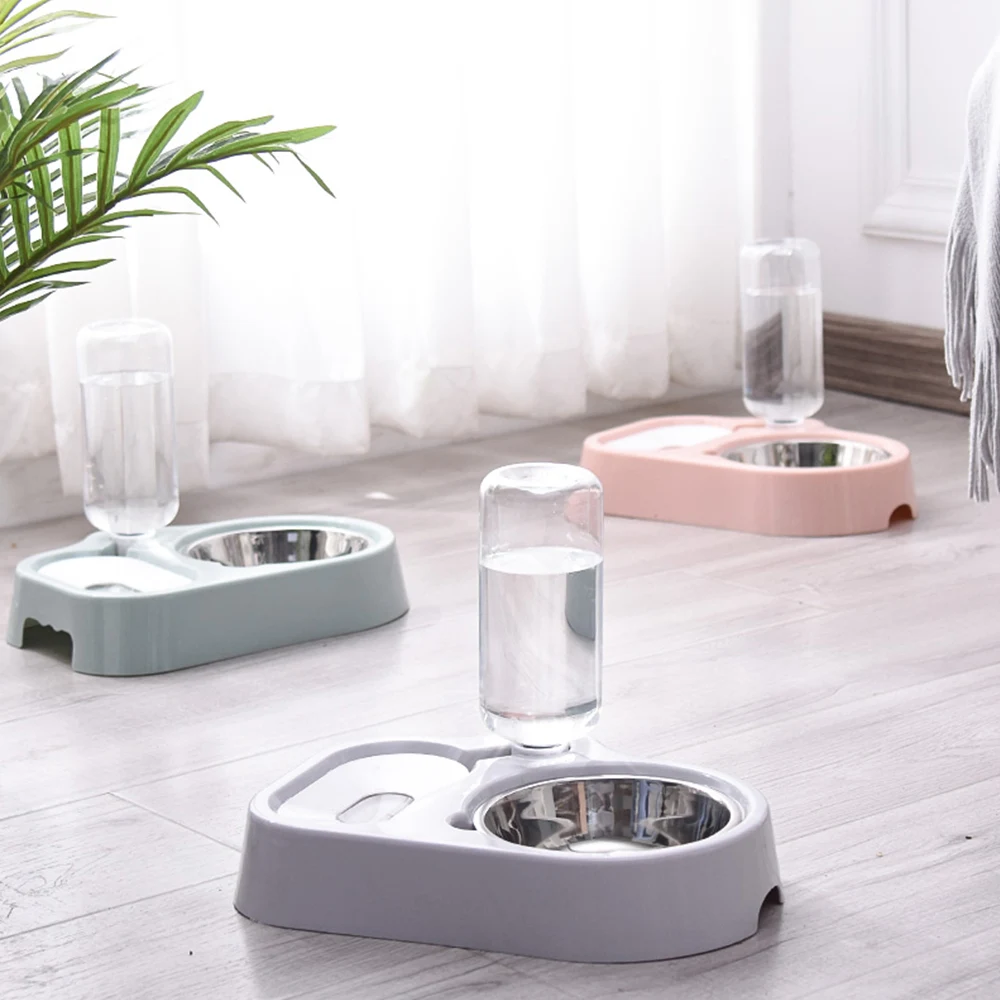 2 в 1 автоматическая конструкция подачи, одна чаша для еды, другая для воды, так что ваш питомец может наслаждаться едой и водой в то же время, делает Кормление проще.